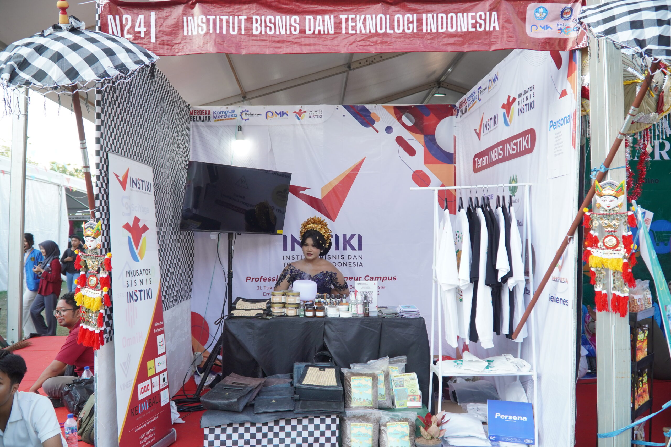 Tujuh tim wirausaha mahasiswa INSTIKI tampil dan pamerkan produk kewirausahaannya dalam KMI Expo XV 2024. Produk-produk tersebut adalah hasil inovasi mahasiswa dalam berbagai bidang, mulai dari fashion hingga kecantikan. Tujuh tim tersebut merupakan penerima pendanaan Program Pembinaan Mahasiswa Wirausaha (P2MW) 2024. Ketujuh tim tersebut meliputi ‘Persona Tech Wear’ oleh Yudika Ammara Zulkarnaen dan Muhammad Wahyu Nur Rahman, akun Instagram @personatechwear; ‘Sundari Bali’ oleh I Gusti Ngurah Agung Prama D.P.K., dan I Gusti Ayu Indiari, dengan akun Instagram @sundarioil.id; ‘Dhuparum Flore’ oleh Made Agus Dana Gunawan Dwi Putra, Kade Wiratama Maftuh Ahnan Afriyandi, Sattvika Kartika Putri, dan Ni Putu Sri Andayani, dengan akun Instagram @dhuparumflore.ofc; ‘Selus (Vegan Leather)’ oleh I Made Pradnya Budi Pratama, I Kadek Ari Yuditya, I Gede Aditya Adi Putra, dan Rafly Syahnaufal Nugraha, akun Instagram @selulosaofficial; ‘Nr.nailbeauty’ oleh Ni Nyoman Nadya Rahelya, Ni Putu Novia Kirana Dewi, Olivia Sutriani Jelni, dan Ni Wayan Adriani, akun Instagram @nr.beautys; ‘Resilum Peat’ oleh I Made Widya Anggara, I Komang Ari Nata, Ni Kadek Nadya Prasetya, I Wayan Suamba, dan Ni Wayan Irma Jayanti, dengan akun Instagram @resilumpeat; serta ‘Reisenesia’ oleh I Made Budi Hardianta, I Nengah Lastra Wira Primadika, I Putu Adi Santika Jaya, I Kadek Siwa Sathyaprilia, dan I Made Kevin Pratama, dengan akun Instagram @reisenesia.official.