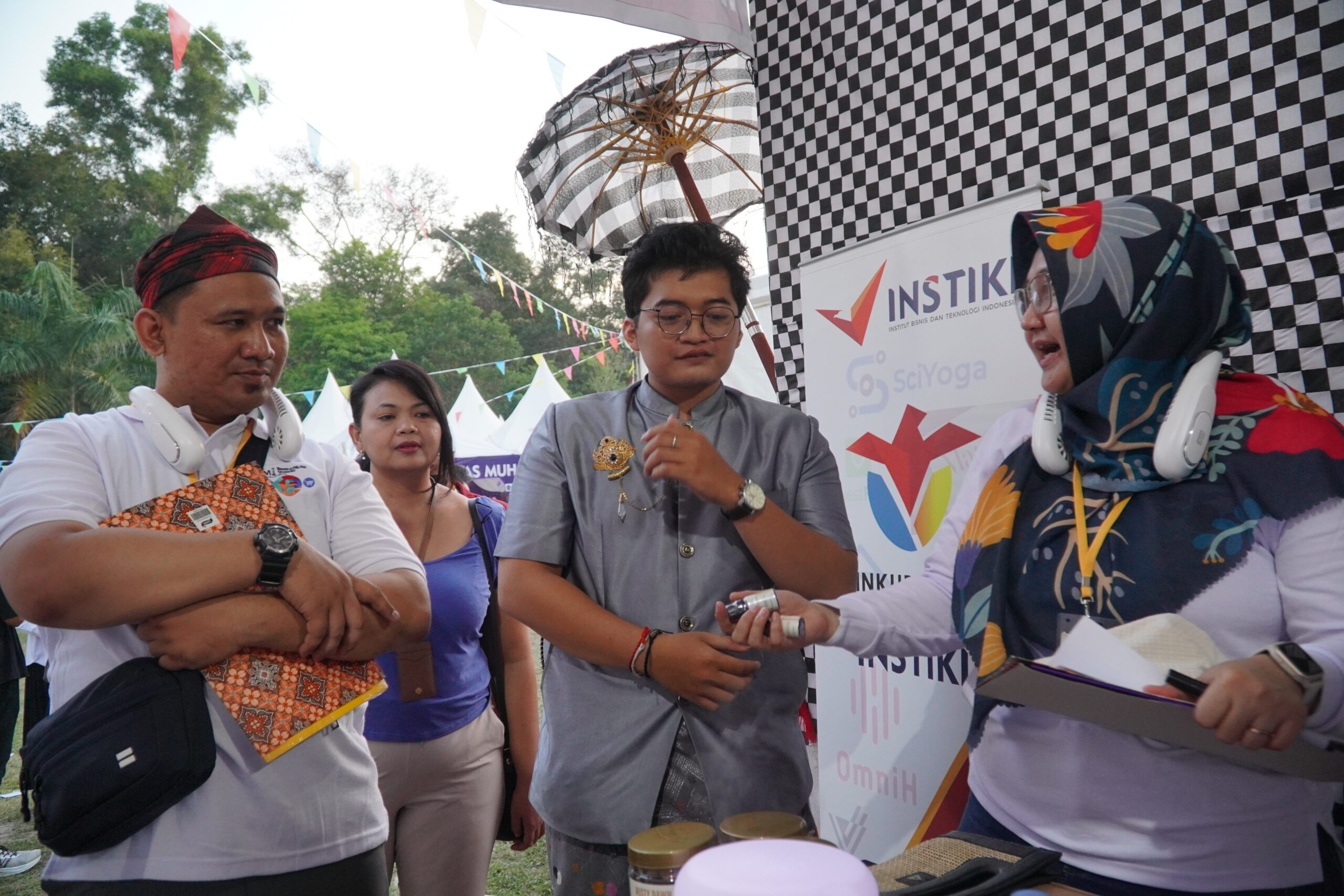 Selain itu, civitas akademika INSTIKI menunjukkan semangat yang luar biasa dalam mempromosikan produk mereka. Stand Civitas akademika INSTIKI juga mendapatkan banyak perhatian karena menampilkan produk yang unik dan kreatif, tak lupa civitas akademika INSTIKI juga mengenakan busana khas Bali yang menjadi daya tarik tersendiri bagi para pengunjung. “Mahasiswa INSTIKI sangat antusias, mereka tidak hanya menunggu pengunjung datang ke stand, tetapi aktif berkeliling memperkenalkan produk ke stand-stand lain. Ini menunjukkan keberanian mereka yang luar biasa dalam berwirausaha,” tambahnya.