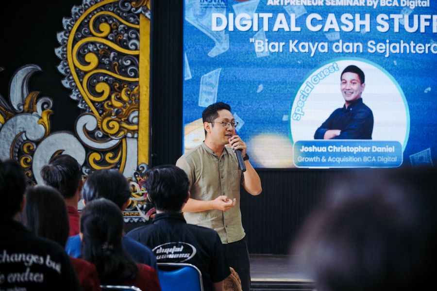 Artpreneur Seminar menghadirkan Joshua Christopher Daniel yang merupakan Growth & Acquisition BCA Digital, sebagai pembicara. Dengan pengalaman dan keahliannya di bidang keuangan digital, Joshua Christopher Daniel memberikan wawasan dan berbagi pengalaman tentang bagaimana memanfaatkan teknologi untuk meningkatkan kesejahteraan finansial generasi muda masa kini. Acara yang berlangsung di Aula INSTIKI ini diikuti dengan antusiasme tinggi dari para mahasiswa dalam belajar mengenai konsep digital cash stuffing.
