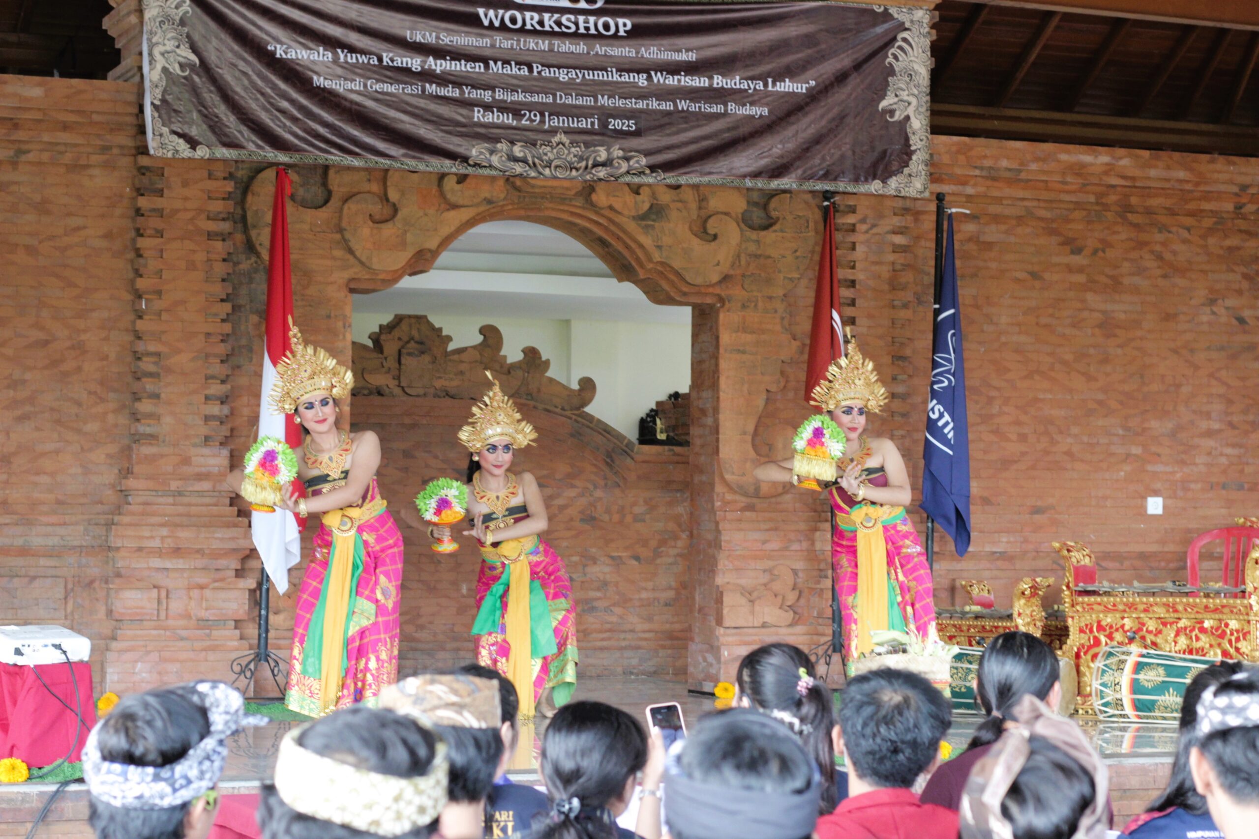 Dalam semangat pelestarian budaya Bali di tengah arus modernisasi, Unit Kegiatan Mahasiswa (UKM) Tabuh “Arsanta Adhimukti” dan UKM Seniman Tari Institut Bisnis dan Teknologi Indonesia (INSTIKI) menyelenggarakan Workshop yang bertajuk “Kawula Yuwa Kang Apinten Maka Pangayumikang Warisan Budaya Luhur”. Workshop ini berlangsung pada 29 Januari 2025 bertempat di Wantilan Pura Dalem Tegaljaya.