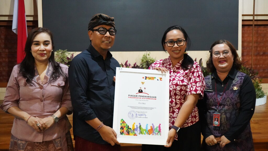 Wakil Wali Kota Denpasar, I Kadek Agus Arya Wibawa menyerahkan Piagam Penghargaan Vasudhaiva Kutumbakam Tahun 2025 kepada INSTIKI, yang diwakili langsung oleh Ni Putu Suci Meinarni, S.H., LL.M selaku Kepala Departemen Pengelolaan PKM dan Pemberdayaan Hasil Riset INSTIKI. Pada kesempatan ini, Wakil Wali Kota Denpasar menyatakan bahwa penghargaan ini sebagai bentuk apresiasi bagi institusi pendidikan, pilar-pilar sosial, hingga stakeholder yang berperan aktif mendukung program kesejahteraan sosial. “Pembangunan di Kota Denpasar selalu kita polakan dengan pola kolaborasi. Seluruh elemen masyarakat bahu-membahu menuntaskan persoalan kemiskinan dan berbagai masalah sosial,” ujarnya.