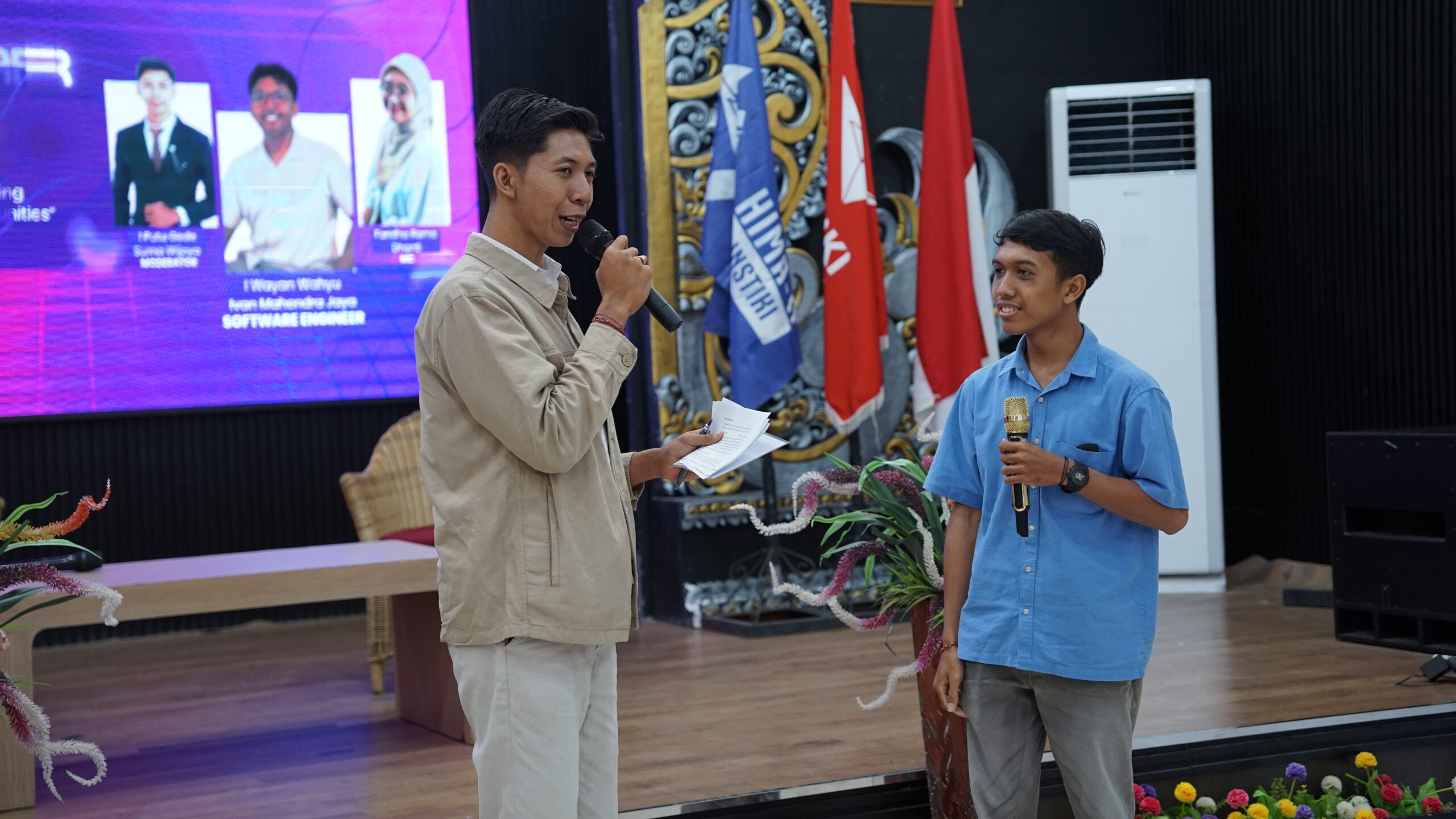 Kegiatan ini menghadirkan narasumber yaitu I Wayan Wahyu Ivan Mahendra Jaya, S.Kom yang membawakan materi bertajuk “AI in Everyday Work: From Ideas to Execution”. Topik ini membahas bagaimana AI dapat digunakan secara praktis untuk membantu proses kerja, mulai dari tahap perencanaan ide hingga eksekusi yang lebih efektif dan terukur. Dalam pemaparannya, narasumber menjelaskan bahwa AI dapat dimanfaatkan sebagai alat bantu untuk meningkatkan produktivitas individu maupun tim, seperti dalam pengolahan data, pembuatan konten, analisis informasi, hingga pengambilan keputusan. Selain itu, peserta juga diajak untuk memahami cara menggunakan AI secara bijak, etis, dan bertanggung jawab agar teknologi ini benar-benar memberikan dampak positif.