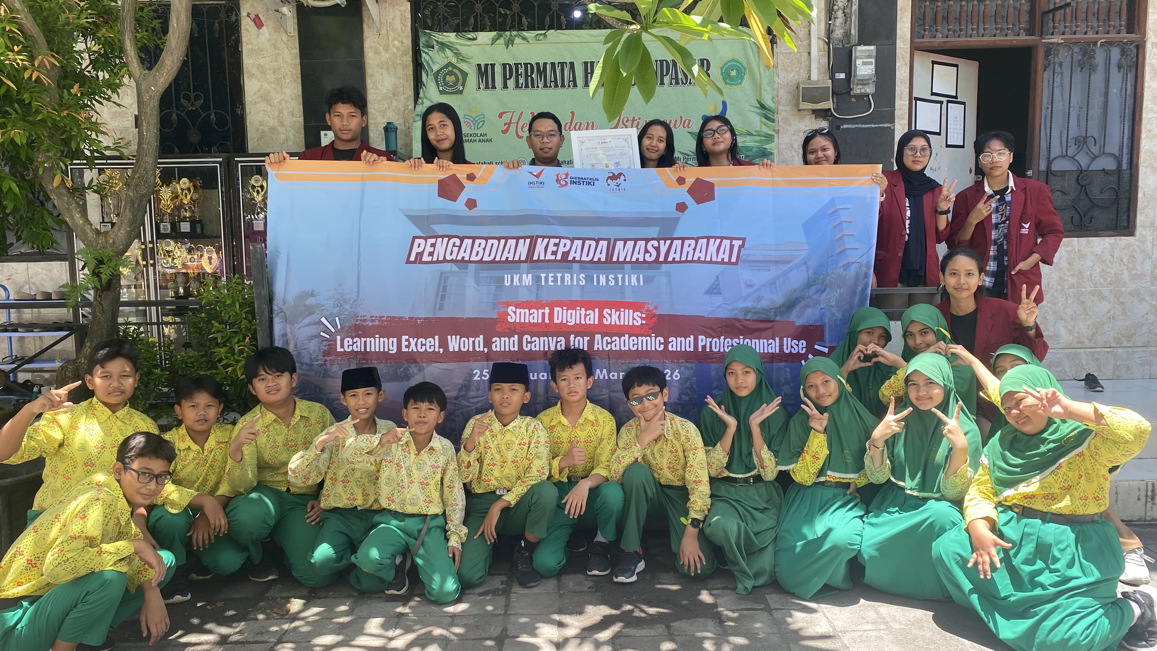 Mahasiswa UKM Teater INSTIKI (TETRIS) menggelar kegiatan Pengabdian Kepada Masyarakat (PKM) berupa pelatihan keterampilan digital bagi siswa di Madrasah Ibtidaiyah Permata Hati, Denpasar Selatan, Bali. Kegiatan ini bertujuan untuk memperkenalkan penggunaan aplikasi digital seperti Microsoft Excel, Microsoft Word, dan Canva kepada siswa sekolah dasar. Program yang mengusung tema “Smart Digital Skills: Learning Excel, Word, and Canva for Academic and Professional Use” ini dilaksanakan dalam tiga pertemuan, yaitu pada 25 Februari 2026, 4 Maret 2026, dan 5 Maret 2026 di Madrasah Ibtidaiyah Permata Hati yang berlokasi di Jalan Raya Pemogan No. 211, Denpasar Selatan.