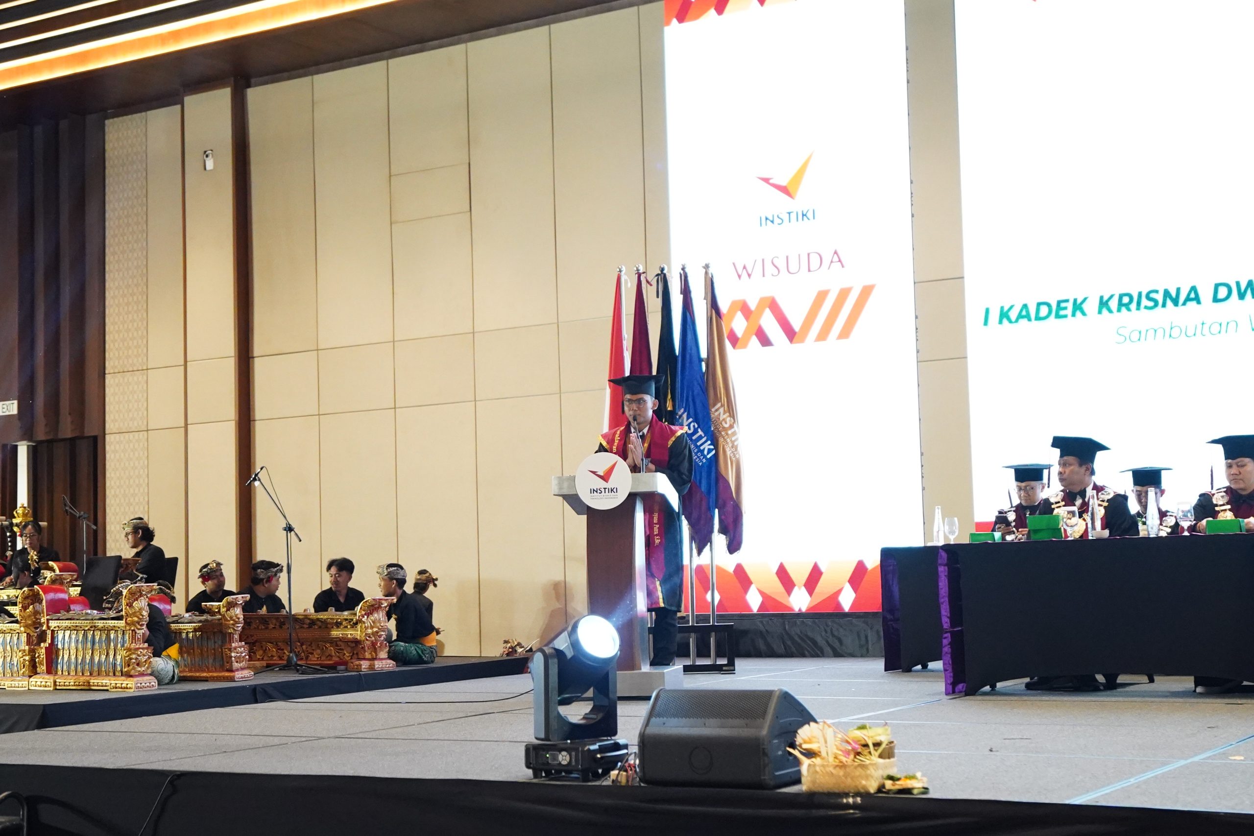 Dalam sambutannya, Rektor INSTIKI menegaskan bahwa wisuda merupakan titik awal untuk berkontribusi di tengah masyarakat.