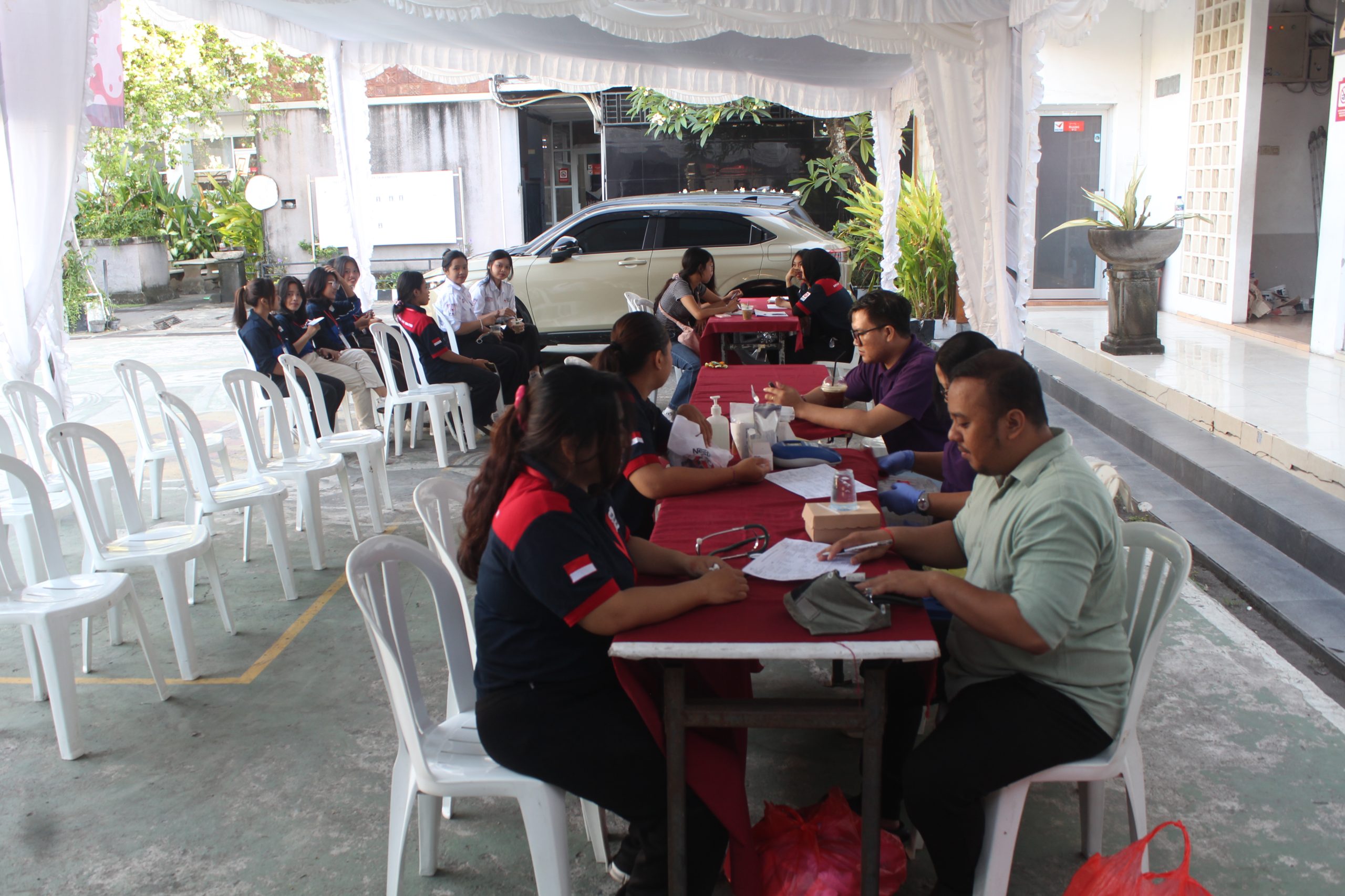 Sebelum hari pelaksanaan, panitia telah melakukan berbagai persiapan, mulai dari koordinasi dengan pihak terkait hingga publikasi kegiatan melalui media sosial dan lingkungan kampus. Hal ini dilakukan untuk menarik minat partisipasi mahasiswa serta memastikan kegiatan berjalan dengan lancar. Pada hari kegiatan, peserta yang hadir mengikuti beberapa tahapan sebelum melakukan donor darah. Tahap pertama adalah pendaftaran dengan mengisi data diri. Selanjutnya, peserta menjalani pemeriksaan kesehatan awal (screening) oleh petugas Palang Merah Indonesia yang meliputi pengecekan tekanan darah, kadar hemoglobin, serta riwayat kesehatan.