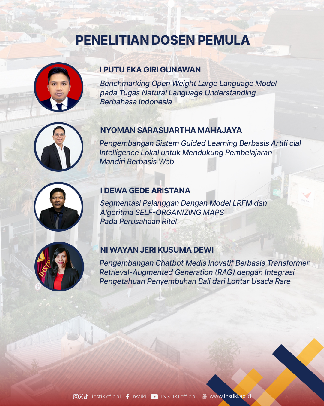 Sejumlah dosen INSTIKI berhasil lolos pendanaan pada berbagai skema tersebut dengan mengusung tema-tema inovatif yang relevan dengan kebutuhan masyarakat dan perkembangan teknologi saat ini.