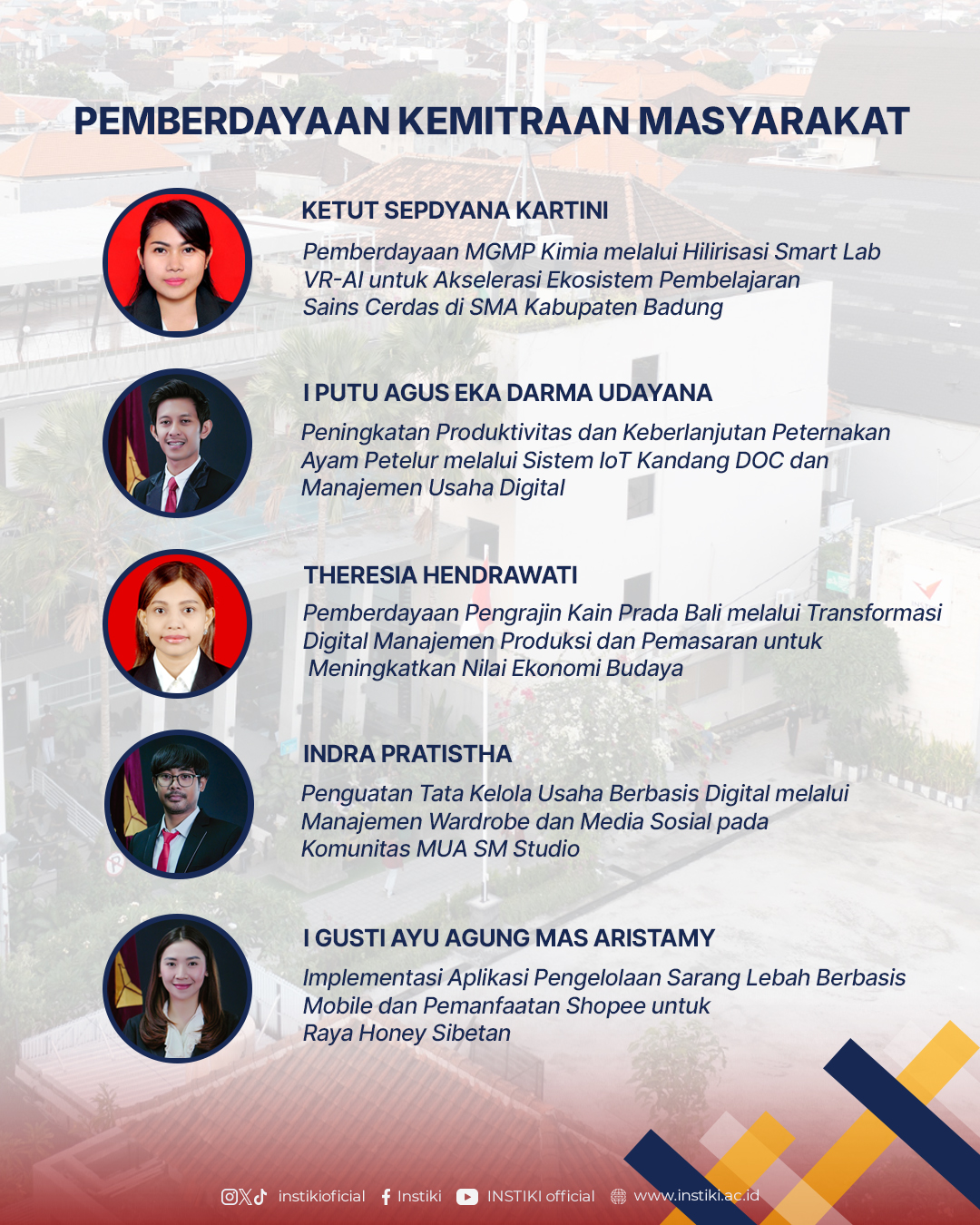 Keberhasilan ini menjadi bukti komitmen INSTIKI dalam mengembangkan tridarma perguruan tinggi, khususnya pada aspek penelitian dan pengabdian kepada masyarakat. Dengan mengusung berbagai inovasi berbasis teknologi serta kearifan lokal, INSTIKI terus berupaya menghadirkan solusi nyata bagi masyarakat sekaligus memperkuat daya saing institusi di tingkat nasional.